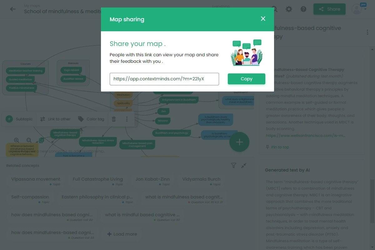 Share links to your mind maps with anyone—even if they don’t have a ContextMinds account!